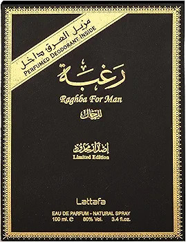 عطر ادکلن رغبه مشکی Raghba لطافه عطری مردانه و شیک با رایحه خنک و تلخ و کمی تند است. این ادکلن مردانه و سلطنتی مختص مردانی دارای اعتماد به نفس و نیرومند است. ادکلن رغبه لطافه همانند یک کت و شلورار بی نقص همچنان برای مردانی که اعتماد به نفس بالایی دارند، در اوج شکوه و جذابیت شان استفاده می شود. این عطر کلاسیک و فراموش نشدنی هرگز قدیمی نمی شود و از مٌد نمی افتد . هم اکنون می توانید ادکلن رغبه مشکی لطافه را به صورت عمده و تک با قیمت بسیار مناسب و باور نکردنی از فروشگاه هرمز پرفیوم سفارش دهید. پس از ثبت سفارش ، این محصول در سریع ترین زمان ممکن برای شما ارسال می گردد.